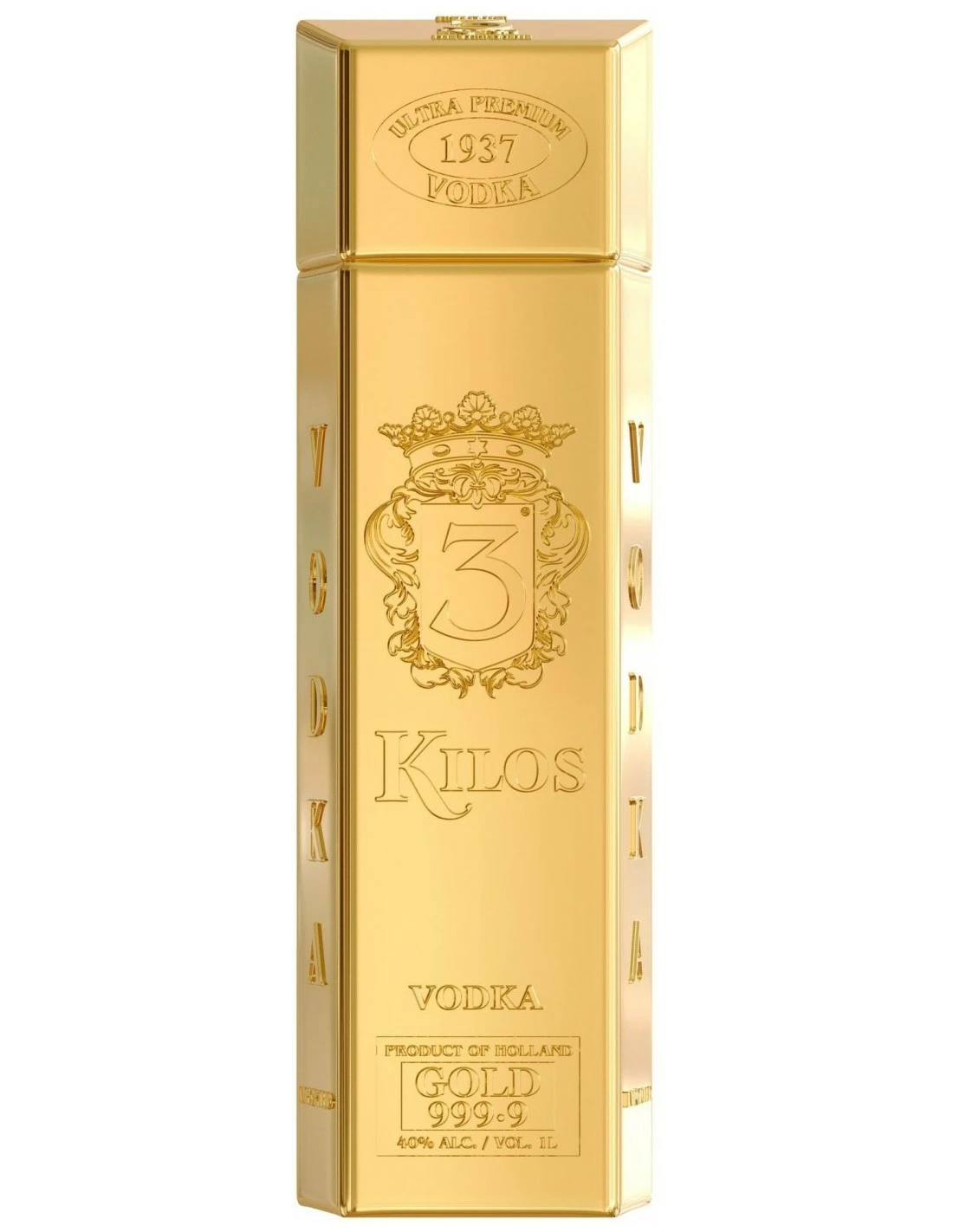Destilado en Holanda, este vodka ultra premium está hecho de trigo y destilado 5 veces según un proceso de destilación ancestral ruso. En el paladar, un vodka dulce, suave y refinado. En referencia a la Ley de Reservas de Oro de Fort Knox promulgada por el Presidente Roosevelt en 1937, la botella de 3 KILOS VODKA representa un lingote de oro lleno de historia.