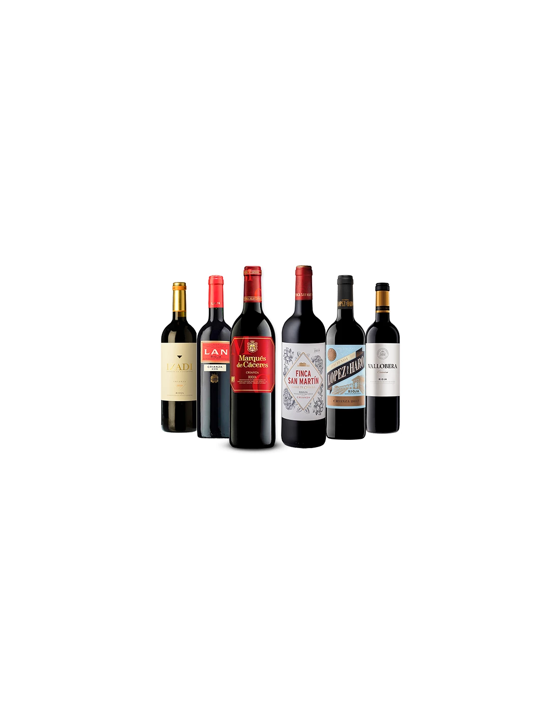 Este pack incluye: Izadi Crianza, LAN Crianza, Marqués de Cáceres Crianza, Finca San Martín Crianza, Hacienda López de Haro Crianza y Vallobera Crianza.