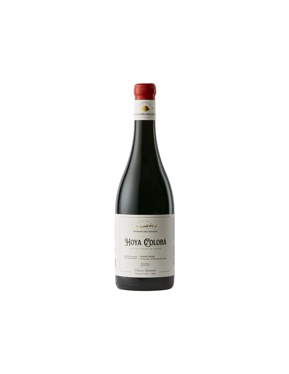 Pinot Noir de la parcela Hoya Colorá, a 1.000 metros de altitud rodeada de lagos que permiten una buena maduración conservando la acidez. Mínima Intervención.