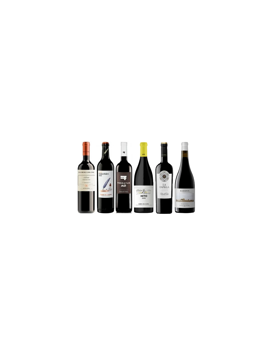 Este pack incluye: Hacienda Solano Selección, Cepa Gavilán Crianza, Ferratus A0, Hito, La Capilla Crianza y Bardos Romántica.