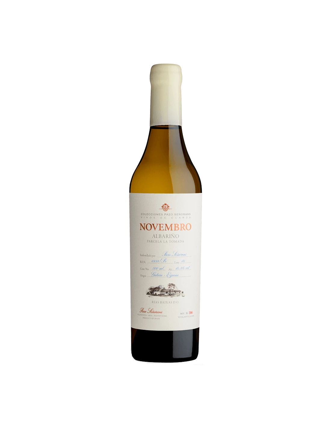 El Novembro de Pazo Señorans es el vendimia tardía. Una apuesta que solo puden hacer algunos años con características climatológicas muy concretas, pues como su nombre indica, se vendimia en noviembre. Edición limitada a 200 botellas.